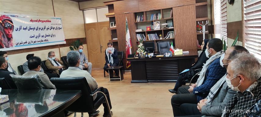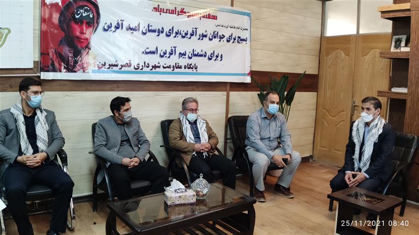 به گزارش روابط عمومی شهرداری قصرشیرین ، کارکنان بسیجی با حضور مهندس باقری شهردار بسیجی و جهادی قصرشیرین به مناسبت گرامیداشت هفته بسیج در اتاق شهردار گرد هم آمدند .